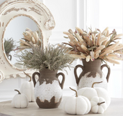 Matte Taupe & White Glazed Double Handle Vases