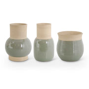 Sage Green Stoneware Vases w/Natural Top and Bottom