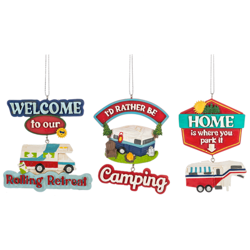 MX199518 Camping Life Ornaments 3.5" x 3.5" Welcome to Our (A), I'D Rather be Camping (B), or Home is where you park it (C) Resin Decor, Camp, Cabi...
