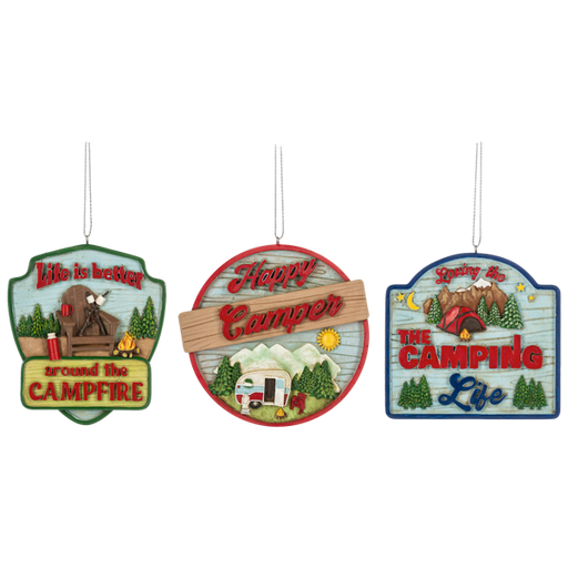 MX199524 Camping Plaque Ornaments 3.75" x 3.75" Life is Better (A), Happy Camper (B), or Camping Life (C) Resin Decor, Cabin, Camp, Trailer, RV, Mo...