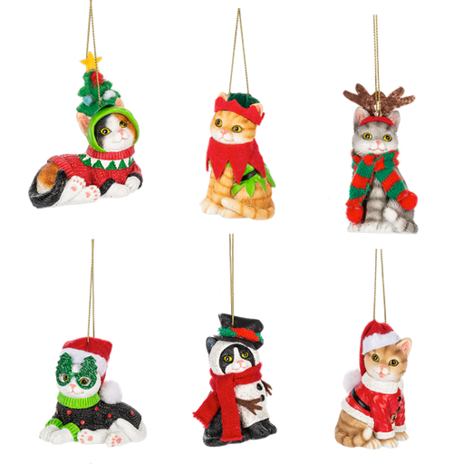 EX27227 Fleas Navidad Cat Ornaments 3" H A, B, C, D, E, or F Resin Decor, Christmas Tree, Hang, Animal, Cat, Kitten