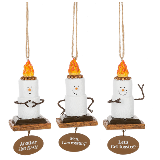 MX200397 S'mores with Campfire Hat Ornaments 2" x 5" Another Hot Flash (A), Man I'm Roasting (B), or Let's Get Toasted (C) Resin Decor, Christmas, ...