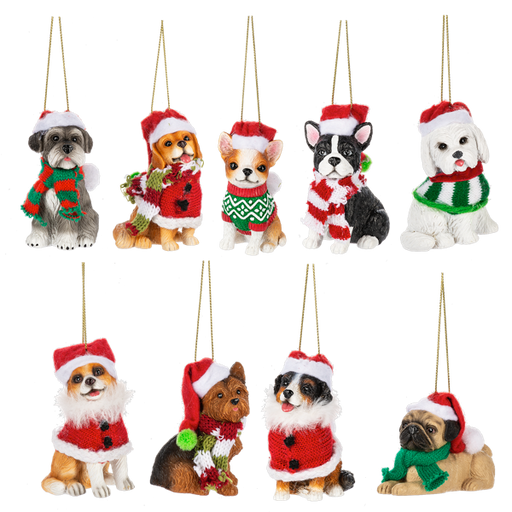 EX27225 Santa Paws is Coming to Town Ornaments 3" H A, B, C, D, E, F, G, H, or I Resin Decor, Christmas Tree, Animal, Dog, Puppy