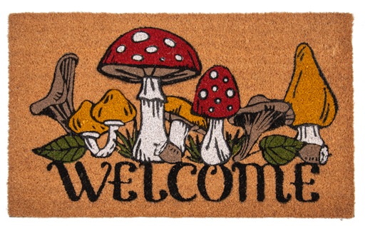 CB196334 Welcome Mushroom Door Mat 30" x 18" Coir / PVC Decor, Entrance, Everyday, Greeting, Indoor, Outdoor