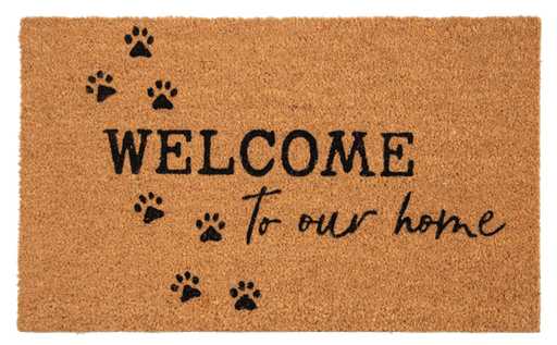 CB196868 Welcome to Our Home Paw Prints Door Mat 30" x 18" Coir / PVC Decor, Entrance, Greeting, Animal, Dog, Cat, Everyday, Pet