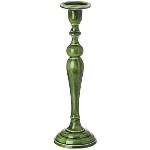MT25928 Green Enamel Candlesticks 15" H, 9" H 2" Pillar or Taper Candle Set of 2 Metal Decor, Candle Holder, Green, Gloss, Shiny, Pillar