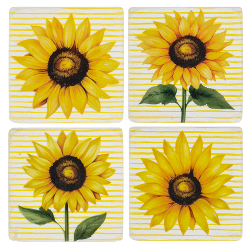 CA196788 Sunflower Coaster Set Set of 4 4" x 4" Resin / Cork Decor, Floral, Flower, Yellow, Fall, Harvest, Autumn, Thanksgiving