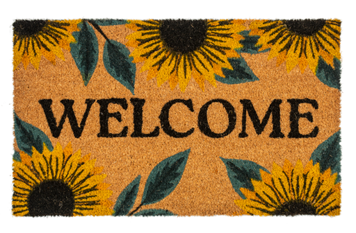 CA196811 Welcome with Sunflowers Doormat 30" x 18" Coir / PVC Decor, Entrance, Fall, Harvest, Autumn, Thanksgiving, Yellow