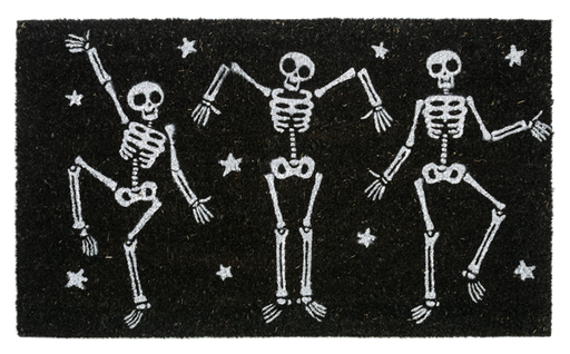 CA196846 Dancing Skeleton Doormat 30" x 18" Coir / PVC Decor, Halloween, Black, White, Entrance