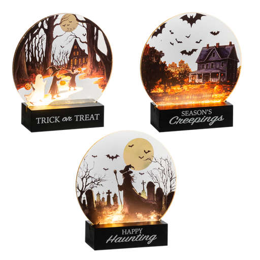 EH79862 Light Up Block Halloween Decor 6" x 2" x 6.5" Trick or Treat (A), Season's Creepings (B), or Happy Haunting (C) Acrylic / Wood Decor, Hallo...
