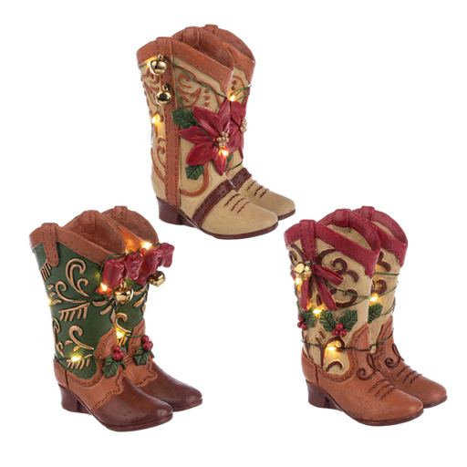 EX28988 Light Up Cowboy Boot Figurines A, B, or C (reads left to right) 5" H Resin Decor, Christmas, Western, Farm, Ranch, Country, Lighting