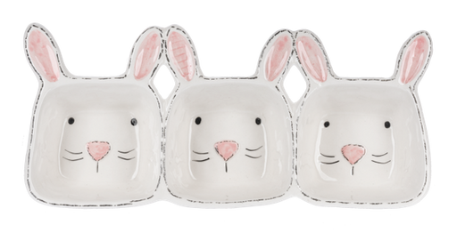 CB199241 Rabbit Triple Serving Dish 11" x 5" x 2" Ceramic Decor, Tray, Easter, Spring, Summer, Bunny, Animal, Plate
