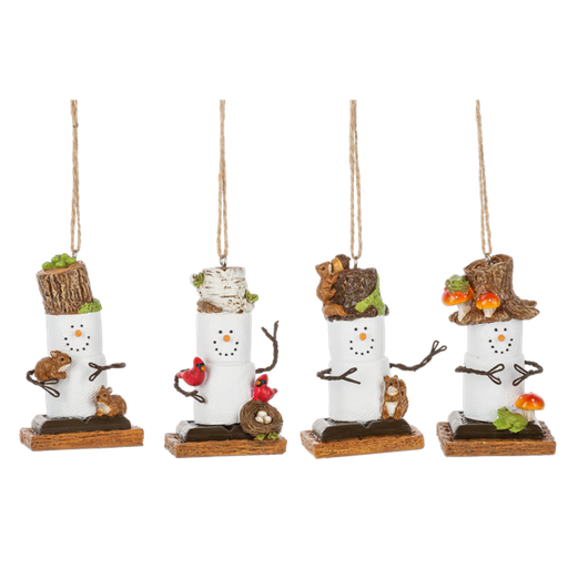 MX200403 S'more with Nature Ornaments 2" x 3.5" A, B, C, or D (reads left to right) Resin Decor, Christmas Tree, Hang, Stump, Smore, Animals
