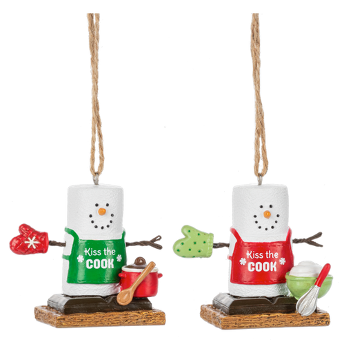 MX196482 S'mores Cooking Ornaments 2.75" x 3" Green Apron (A) or Red Apron (B) Resin Decor, Christmas Tree, Hang, Smore, Chef, Baking, Baker