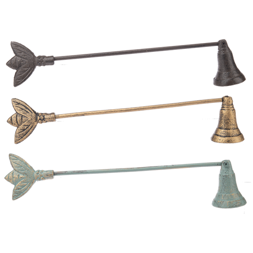 CB195345 Bee Handle Candle Snuffers 11 3/8" W. x 1 5/8" D. x 2 3/8" H. Black (A), Gold (B), or Patina (C) Iron Decor, Candles, Hardware, Metal, An...