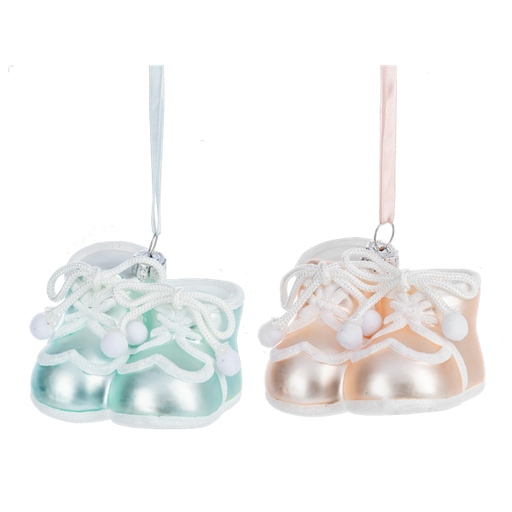 MX197717 Baby Bootie Ornaments 3.5" x 3" Blue (A) or Pink (B) Glass Decor, Christmas Tree, Baby, New Born, Boy, Girl