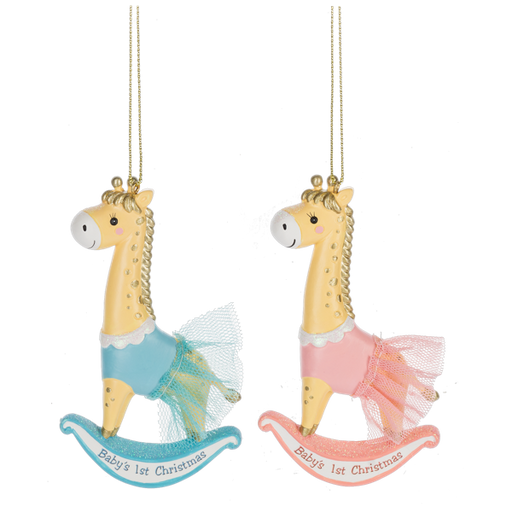 MX197890 Baby's First Christmas Giraffe Ornaments 3.75" x 4.75" Blue (A) or Pink (B) Resin Decor, Christmas Tree, Family, 1st, Boy, Girl, New Born