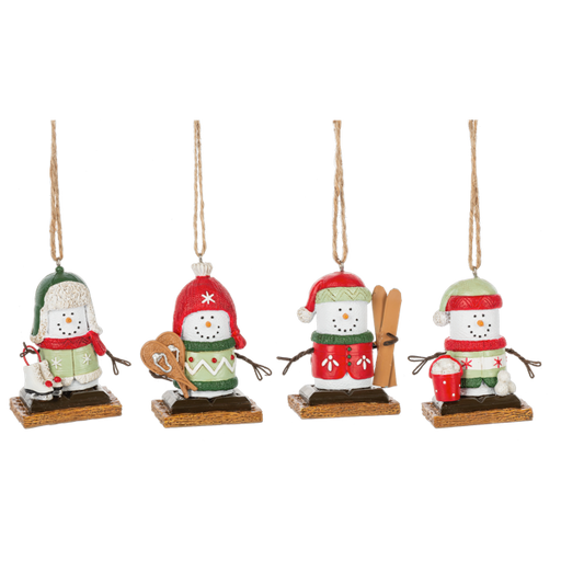 MX196477 S'mores Winter Sport Ornaments 2.5" x 3.25" Skating (A), Snowshoes (B), Skiing (C), or Snowballs (D) Resin Decor, Christmas Tree, Smore