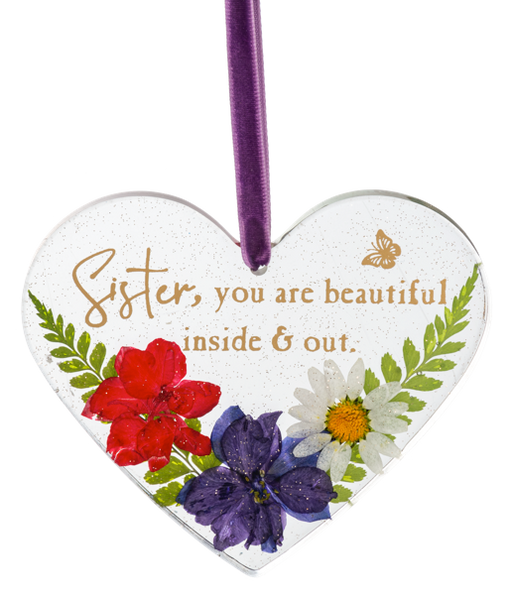 ER70748 Sister, You are Beautiful Inside and Out Ornament 4" x 4" x .25" Epoxy Decor, Gift, Hang, Family, Love, Heart, Sis