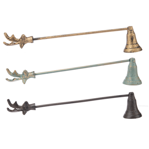 CB195332 Stag Handle Candle Snuffers 11 3/8" W. x 1 5/8" D. x 2 3/8" H Gold (A), Patina (B), or Black (C) Iron Decor, Candles, Animal, Hardware, Ru...