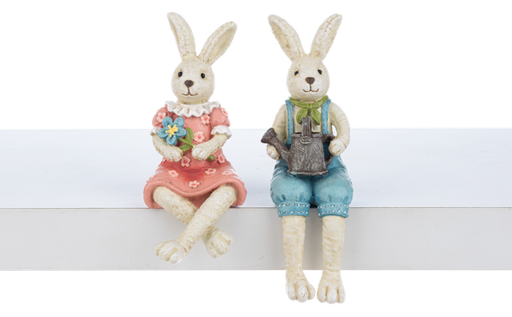 EA13102 Vintage Bunny Shelf Sitter Figurines Girl (A) or Boy (B) 6" Tall Resin Decor, Figurine, Statue, Animal, Rabbit, Spring, Summer, Easter
