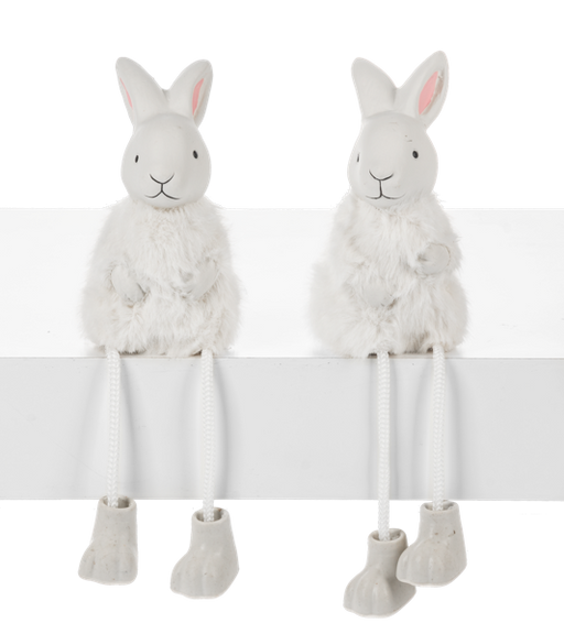EA13424 Bunny with Fur Shelf Sitter Figurines Sold as singles Resin / Cotton Decor, Figurine, Statue, Animal Rabbit, Spring, Summer, Easter