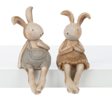 EA12518 Bunny Shelf sitters Boy (A) or Girl (B) 2 3/8" D. x 3 1/8" L. x 5 3/4" H. Decor, Figurine, Statue, Animal, Rabbit, Spring, Pastel,