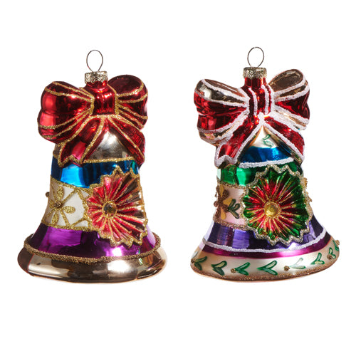 4524896 Vintage Bell Ornament 3.5" x 4.5" Gold (A) or White (B) Glass Decor, Christmas, Retro, Multi color, reflector