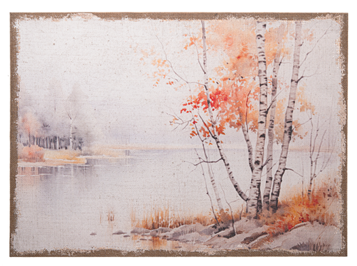 CA196862 Autumn Landscape on Burlap Print 30" x 22" Burlap / Wood Decor, Wall, Art, Print, Hang, Painting, Fall, Harvest, Autumn, Thanksgiving