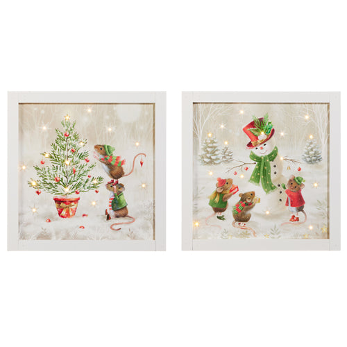 4516604 A Very Mouse Christmas Lit Prints Left (A) or Right (B) Battery Operated, 6 hour on 18 hour off Wood & Canvas, 14" x 1.5" x 14" Decor, ...