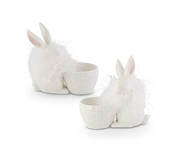 Assorted White Porcelain Egg Holders with Feathered Bunnies