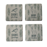 Bird, Deer & Pine Coaster with Holiday Text Coaster 4pc