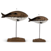 Brown & White Wood Fish on Metal Spindle Set of 2