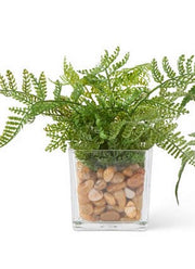 Ferns In Square Glass Vase w/Pebbles- 3 Styles