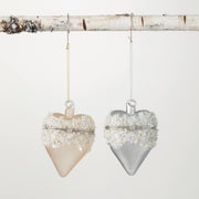 Glass ornaments in heart shapes are encrusted with glitter and hand-beaded sequins. The perfect keeper of memories and hidden treasures. Gorgeous on your Christmas tree, but also perfect for Valentine's Day.