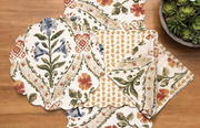 Bring a fresh update to your dining room with the quilted placemat. A classic floral leaf pattern in warm earthy tones of rust, sage, yellow an blue comprises the beautifully printed pattern of the Isabelle tabletop collection. From the farmhouse to your rustic retreat the Isabelle collection is perfect for any room in your home.