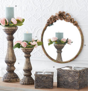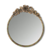 Rustic Metal Flower Topped Green Brown & Gold Round Mirror