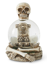 SKELETON WATER GLOBE W/TOMBSTONE & GLITTER BATS