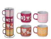 Stoneware Wax Resist Stacked Mugs S/5 - 2 Styles