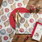 Decor, Christmas, Table, Setting, Linen, Cloth, White, Red, Ornament